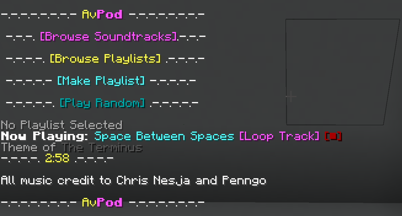 The AvPOD functions only for the player that is holding it, with its menu being contained to the in-game chat. The menu contains 4 main options: