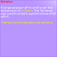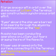 A large spacecraft in orbit over the divine moon of Lo’Dahr. The Terminus was constructed in synchronous orbit with it.