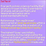 A large Avsohmic science facility that appears frozen in time. Experiments on stasis, advanced flight, and temporal mechanics were experimented with here.