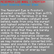 This holotext can be found at the Resonant Eye, deep within the Resonant Halls. It describes the process of the Eye's creation, along with how (and for what) it can be used.