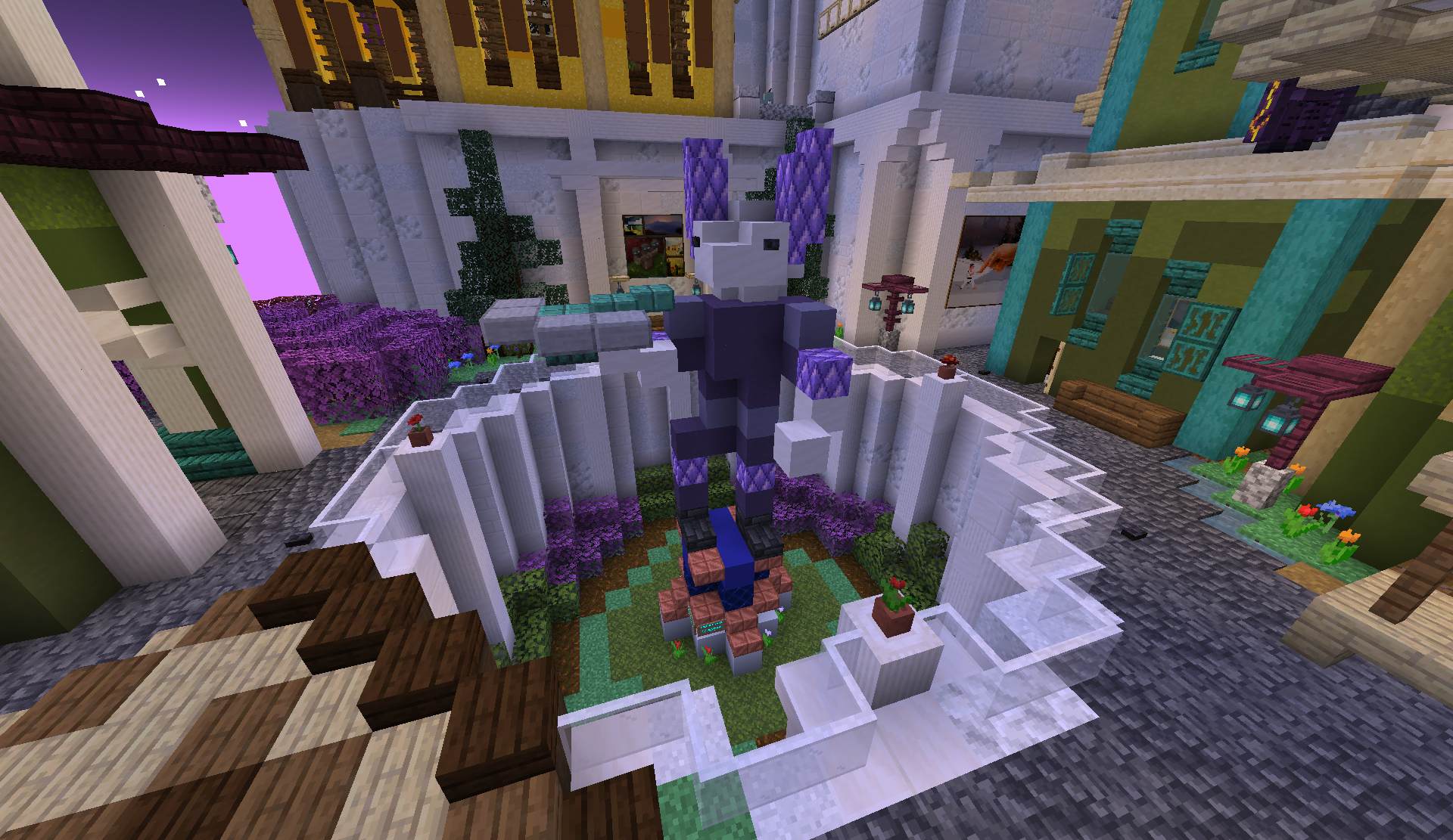 The staircase down to the farmland is flanked by two larges statues of pink and white animals, in a pose resembling real-life sphinx statues. These are believed to depict Moen, the Aspect whose domain Naharja is found in.