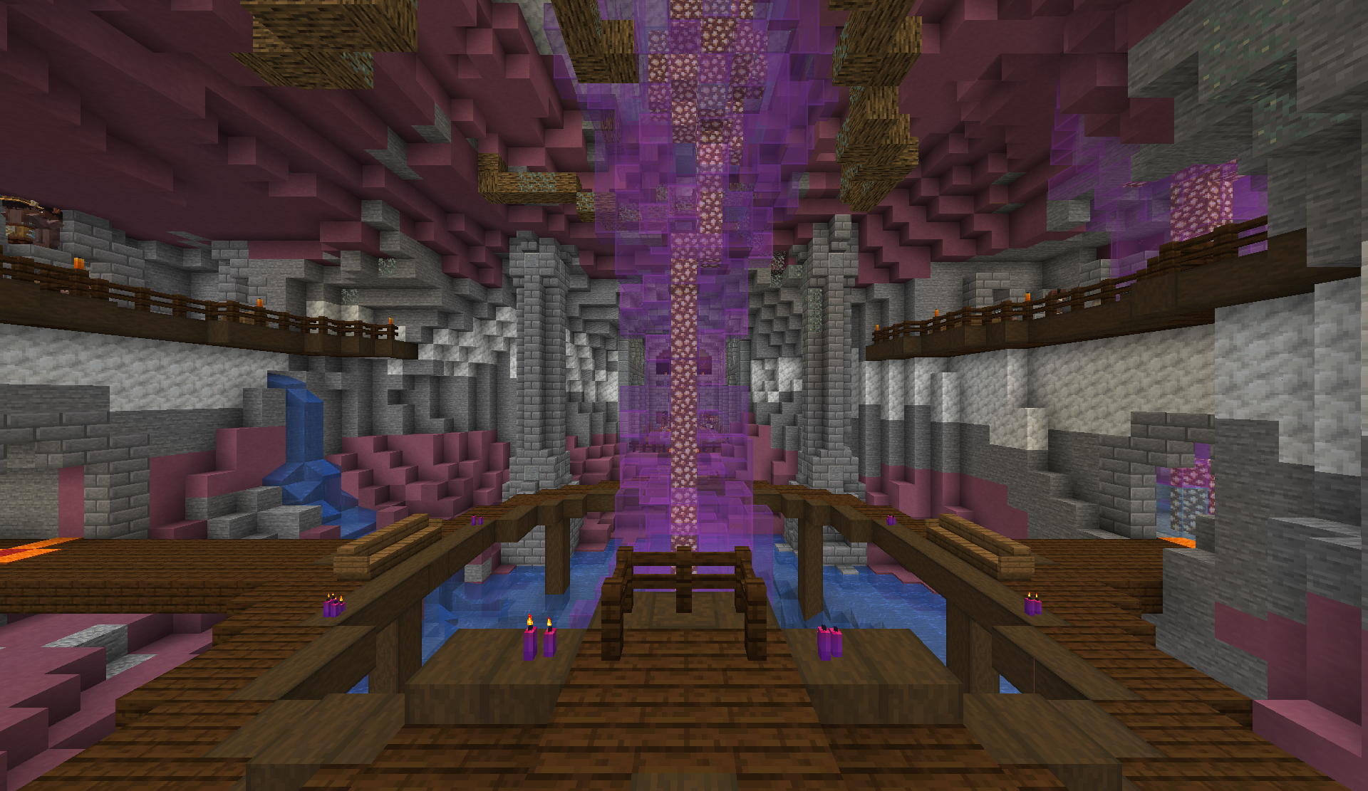 The Coven of Koh is a small settlement, with only one entrance. Immediately upon entering, players will find a large crystal that runs from the ceiling to the ground, with paths branching off in three directions. To either side are staircases that lead upward to living quarters, while there is a large dining hall straight ahead. In this main hall, the Starpiercer artifact pickaxe can be found, behind a black stained glass wall to the right.