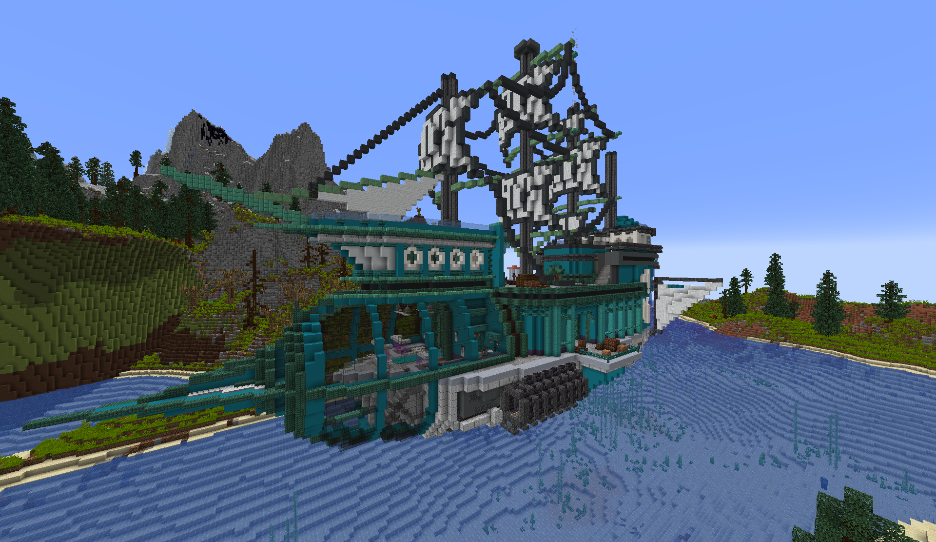 The Arbiter is found floating over the water east of Mt. Mekta, stationary due to the limitations of the Minecraft map. It is home to over 40 villagers.